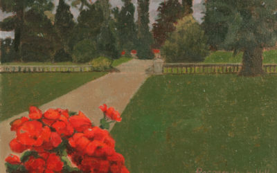 In a month, I take trains, buses and taxis to paint at Hidcote Manor, near Chipping Compton, (Gloucestershire); Buscot Park at Faringdon (Oxfordshire); Blenheim Palace, Woodstock (Oxfordshire); Rousham House, Steeple, (Oxfordshire); Ditchley Park, Woodstock (Oxfordshire); Rodmarton Manor, near Cirencester; Westonbirt Arboretum; Oxford College; Sisencote, near Cheltenham (Gloucestershire); Stowe, 3 miles from Buckingham (Buckinghamshire); Westbury Court, 9 miles southwest of Gloucester (Gloucestershire); Stourhead, Wiltshire; Tintinhull Garden, Somerset; Montacute House, Hestercombe, Taunton; Iford Manor, Bradford-on-Avon; Canterbury Cathedral and village; and Sissinghurst Castle.